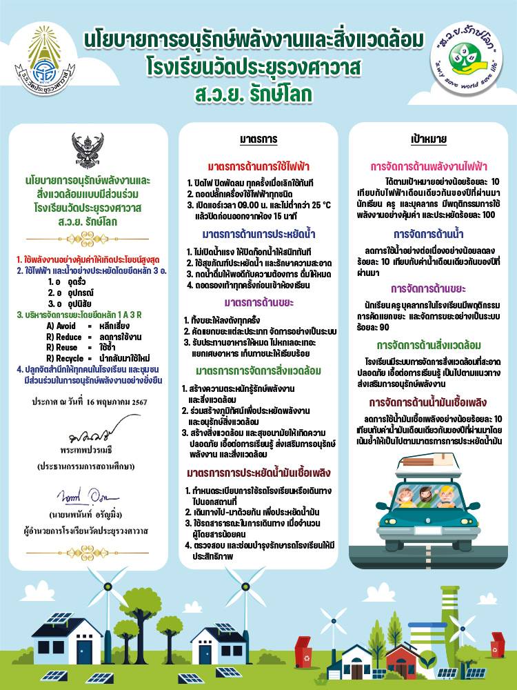 นโยบายการอนุรักษ์พลังงานและสิ่งแวดล้อม โรงเรียนวัดประยุรวงศาวาส