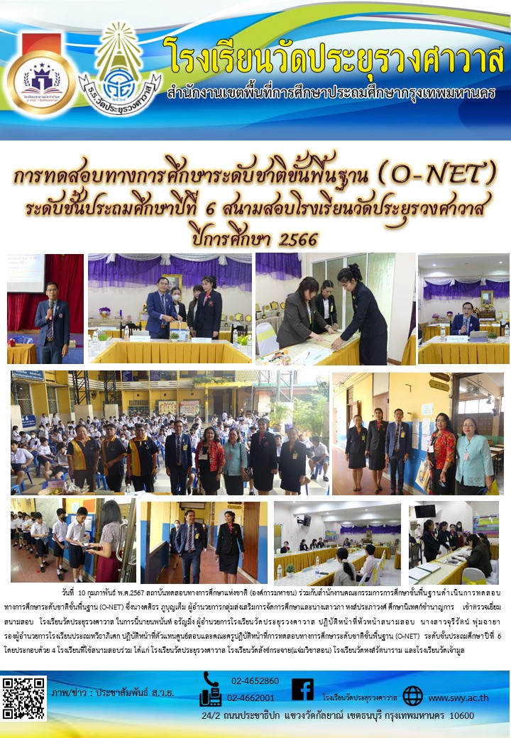 การทดสอบทางการศึกษาระดับชาติขั้นพื้นฐาน (O-NET) ระดับชั้นประถมศึกษาปีที่ 6 สนามสอบโรงเรียนวัดประยุรวงศาวาส ปีการศึกษา 2566