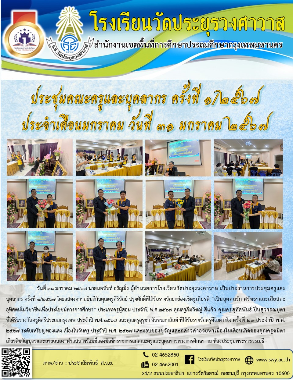 ประชุมคณะครูเเละบุคลากร ครั้งที่ ๑/๒๕๖๗ ประจำเดือนมกราคม