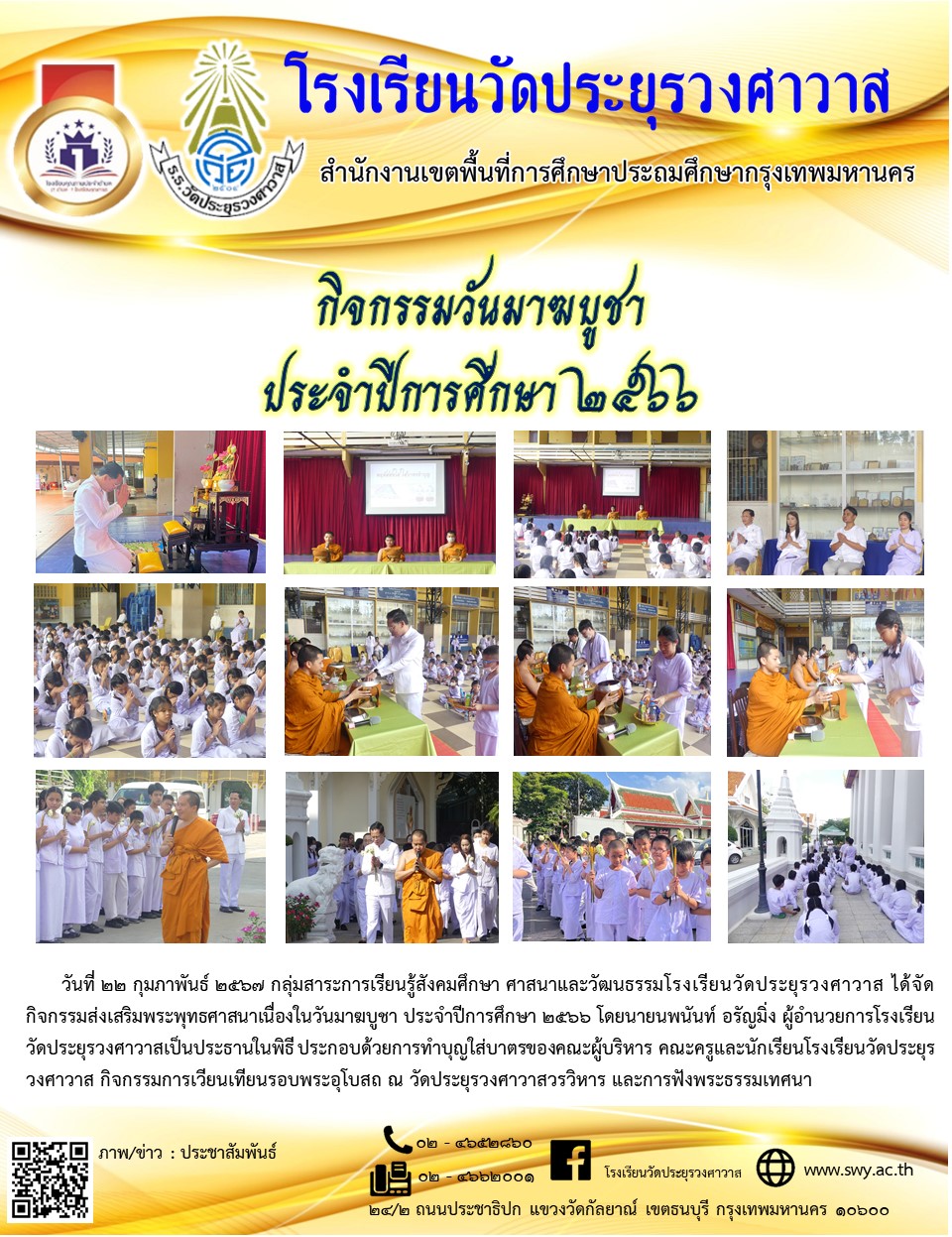 กิจกรรมส่งเสริมพระพุทธศาสนา วันมาฆบูชา ประจำปีการศึกษา ๒๕๖๖