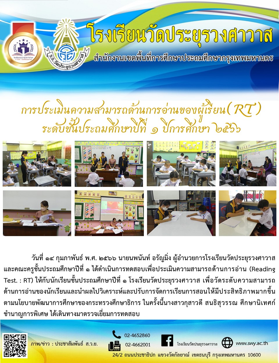 การประเมินความสามารถด้านการอ่านของผู้เรียน RT ประจำปีการศึกษา ๒๕๖๖
