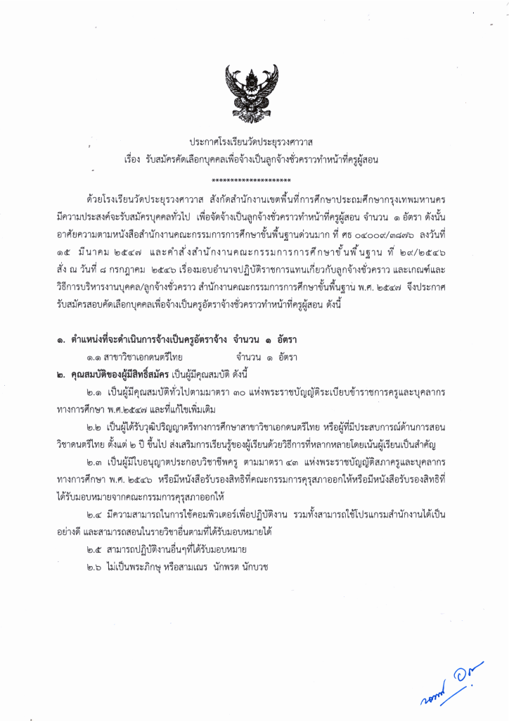 รับสมัครครูอัตราจ้างวิชาเอกดนตรีไทย