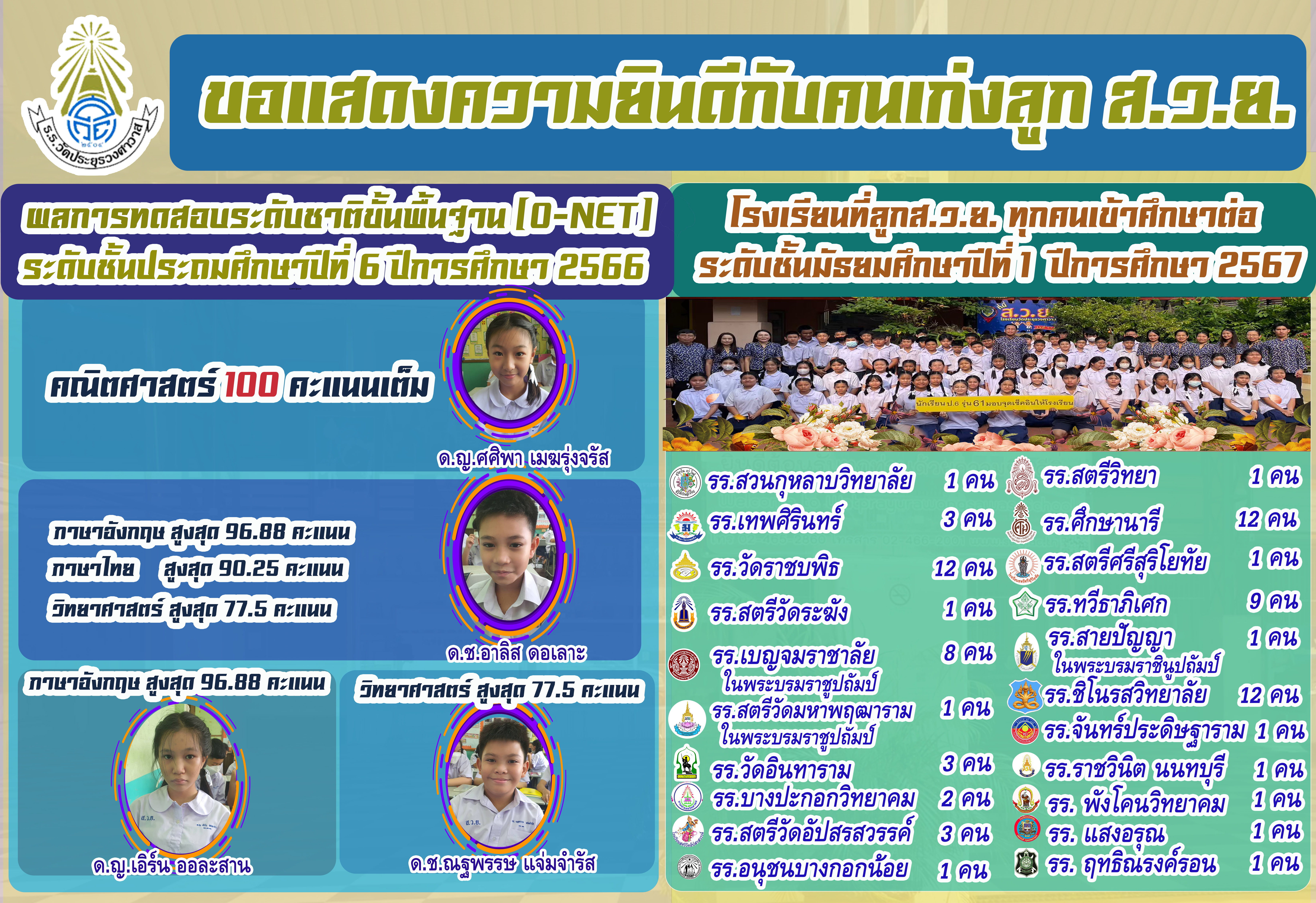 ขอแสดงความยินดีนักเรียนที่ได้คะแนนโอเน็ตสูงสุดและสอบเข้ามัธยม